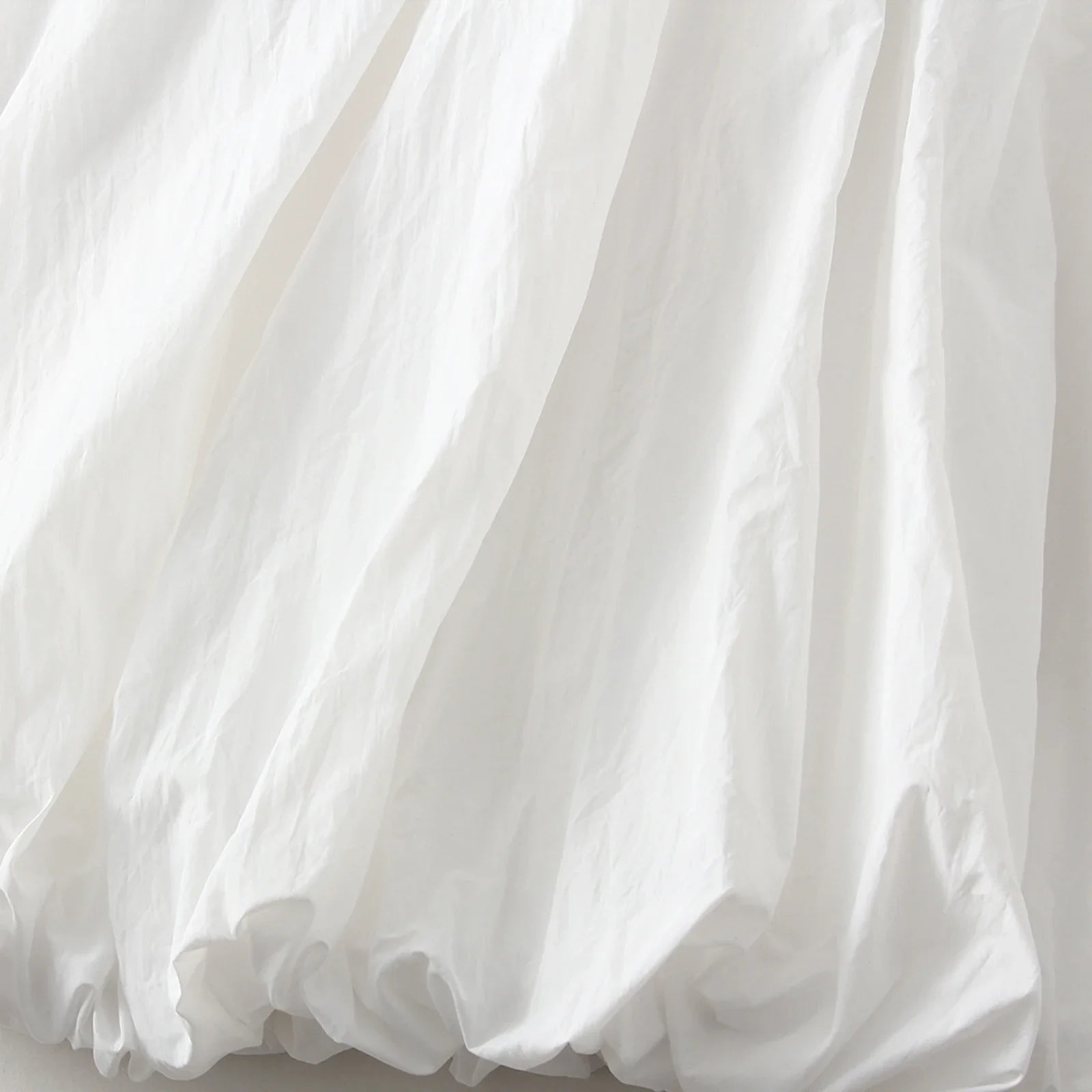 Combhasaki Women's Elegant Elastic High Waist Solid Color A-Line Pleated Puffball Hem Casual Flowy Balloon Bud Midi Skirts