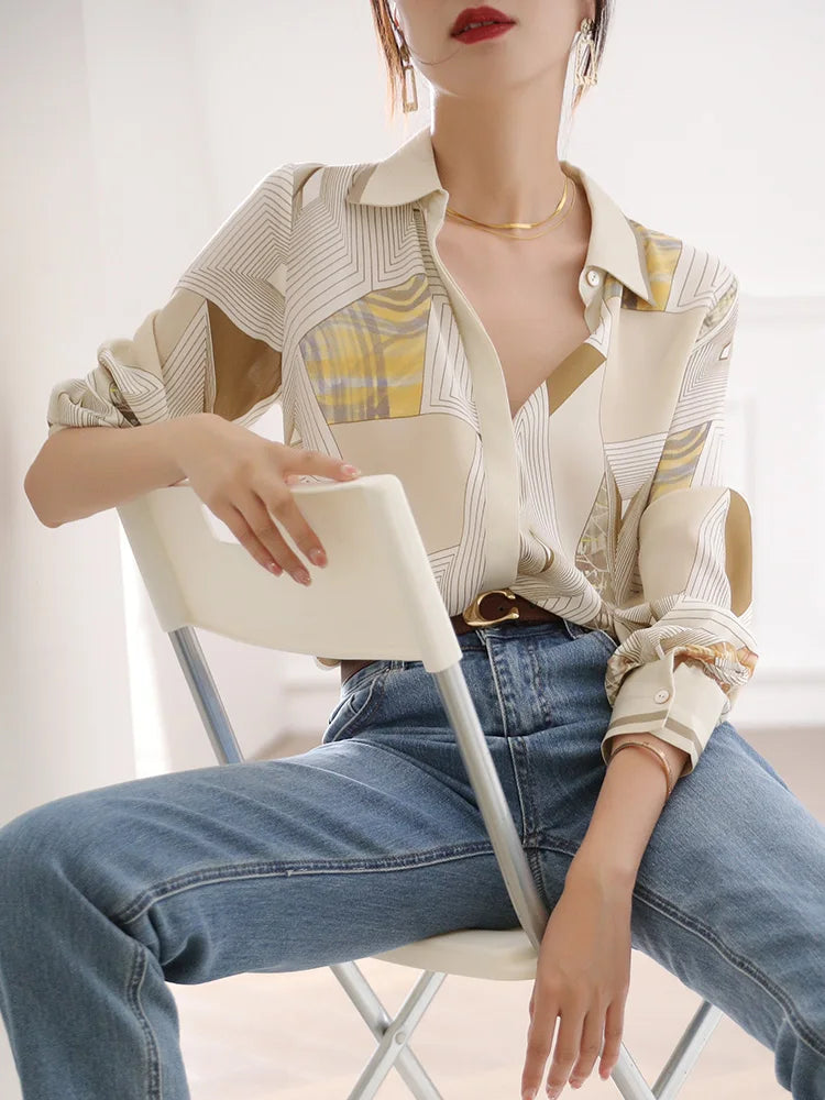 Fashion printing ladies shirts New elegant Women Blouses Spring Autumn Long Sleeve Shirts Tops Blusas Mujer