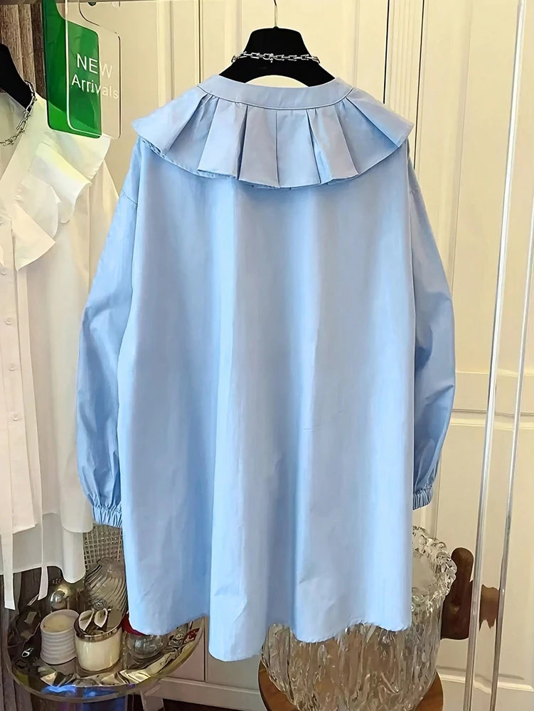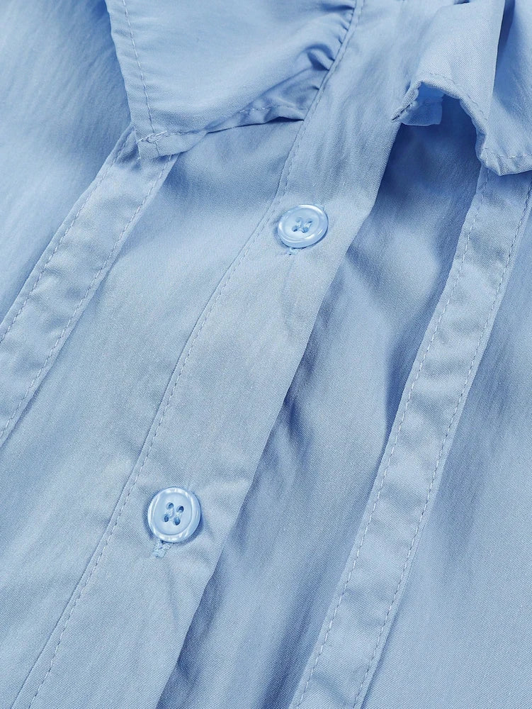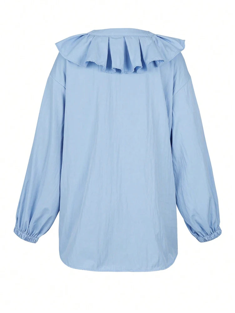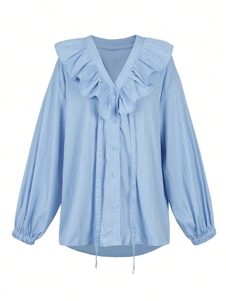 Spring/Summer 2026 New Collection Women's Casual Resort Ruffled Collar Button-Down Shirt Solid Colour Top Everyday Fashion