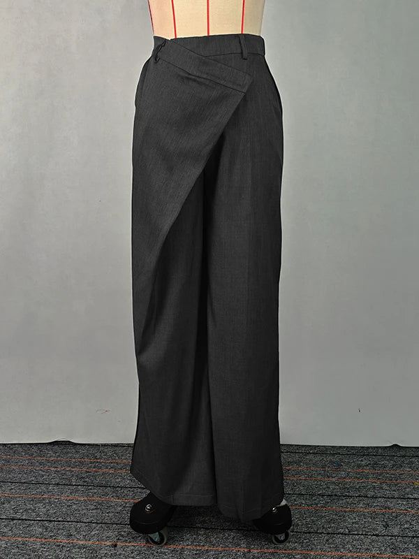 Trendy Women's Solid Color Commuter Pants 2025 Autumn New High Waist Asymmetric Wide Leg Trousers Casual Streetwear Pants