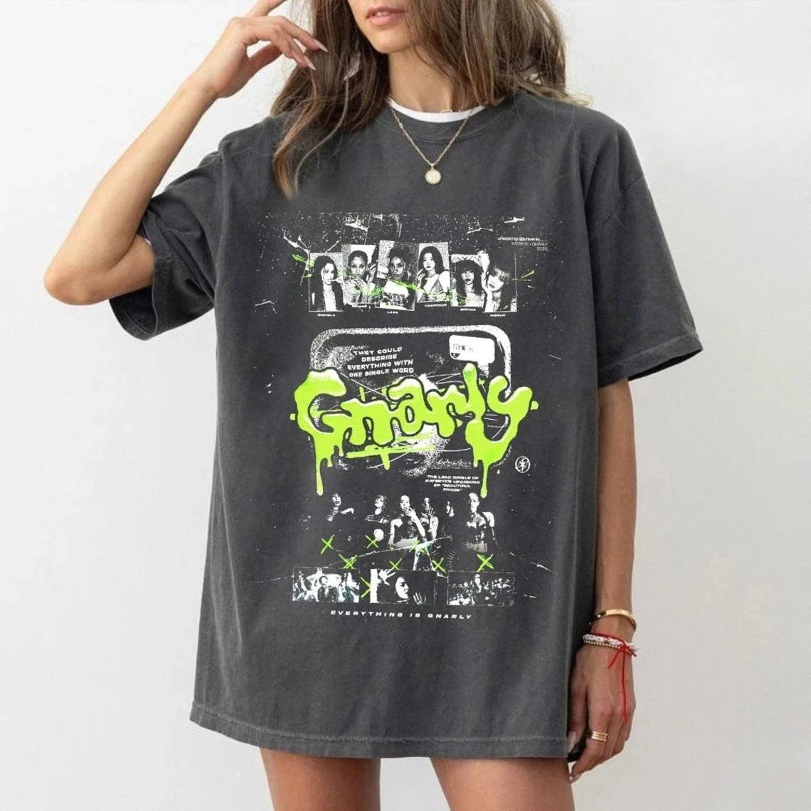 Women's Retro Vintage KATSEYE Gnarly T-Shirt Unisex Men Vintage Oversize Tee Cotton Streetwear Loose Short Sleeve Tops Tee